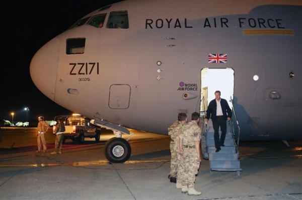 Νωρίτερα, ο Κάμερον είχε περάσει από την Κύπρο και επισκέφθηκε τη βάση στο Ακρωτήρι, από όπου ξεκινούν τα βρετανικά μαχητικά τις επιδρομές κατά των τζιχαντιστών στο Ιράκ.