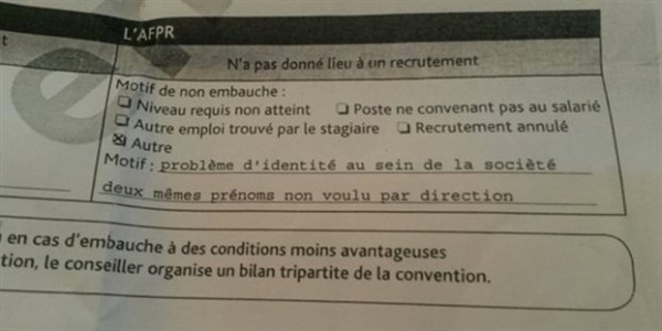 «Είτε το αφεντικό θεωρεί τους πελάτες του χαζούς είτε πρόκειται απλά για μια δικαιολογία γιατί ποτέ δεν ήθελε να με προσλάβει», ανέφερε χαρακτηριστικά η νεαρή Γαλλίδα, προσθέτοντας (το αυτονόητο) πως άνθρωποι με το ίδιο όνομα διακρίνονται από τα επίθετά τους.