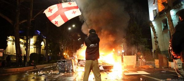 Απόψε το βράδυ χιλιάδες άνθρωποι συγκεντρώθηκαν και πάλι έξω από το κοινοβούλιο, στο κέντρο της Τιφλίδας, κρατώντας σημαίες της Γεωργίας, της Ουκρανίας και της ΕΕ.