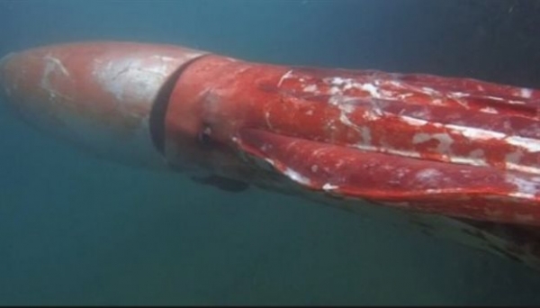 Το τεράστιο μαλάκιο, άσπρο και κόκκινο, κολυμπούσε για ώρες κοντά στην επιφάνεια πριν επιστρέψει στα μεγάλα βάθη όπου ζει κανονικά. Βιντεοσκοπήθηκε από ένα αυτόνομο υποβρύχιο αλλά και από έναν δύτη που κυριολεκτικά κατάφερε να το αγγίξει.