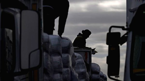 Σε εικόνες του Γαλλικού Πρακτορείου, μεγάλα φορτηγά φορτωμένα με λευκούς σάκους διασχίζουν, από την αιγυπτιακή πλευρά, την είσοδο του περάσματος στη Ράφα που οδηγεί στη νότια Λωρίδα της Γάζας.