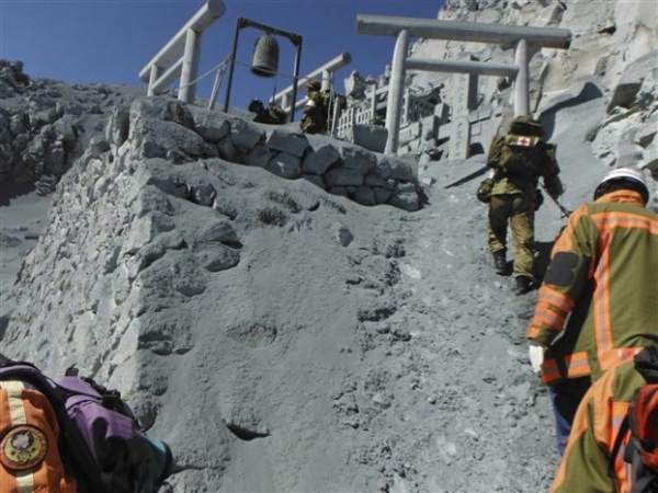 Εκατοντάδες στρατιωτικοί διασώστες ετοιμάζονταν να φθάσουν στο όρος Οντάκε πεζή και με ελικόπτερα για να περισυλλέξουν τα πτώματα τουλάχιστον 24 ανθρώπων που παγιδεύτηκαν από τη θανάσιμη βροχή τέφρας και βράχων μετά την ξαφνική έκρηξη του ηφαιστείου το Σάββατο, όταν ήταν γεμάτο εκδρομείς, ανάμεσα στους οποίους και παιδιά.