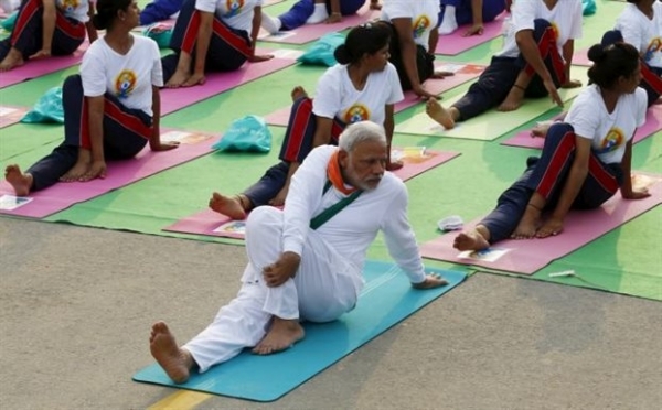 Ο Ινδός πρωθυπουργός, ο οποίος θέλει να ενισχύσει τη θέση της γιόγκα καθιστώντας την κεντρικό στοιχείο του ινδικού πολιτισμού, τέθηκε επικεφαλής μιας συνεδρίας γιόγκα στο Νέο Δελχί, η οποία έχει προσελκύσει περισσότερους από 35.000 ανθρώπους, μεταξύ των οποίων πολλοί δημόσιοι υπάλληλοι, φοιτητές και στρατιώτες, που είναι λάτρεις των asanas (πόζες ή στάσεις στη γιόγκα).