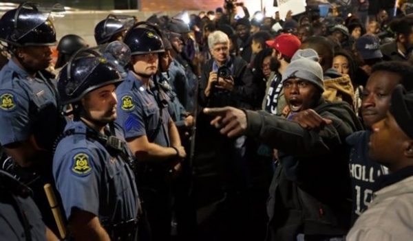«Τα τοπικά αστυνομικά τμήματα μας έχουν ρίξει δακρυγόνα, μας έχουν χτυπήσει και μας έχουν πυροβολήσει με πλαστικές σφαίρες, όμως δεν μπορούν να σταματήσουν την πορεία μας υπέρ της δικαιοσύνης», είπε ο Τεφ Πόε ράπερ από το Σεντ Λιούις και στέλεχος της Hands Up United.