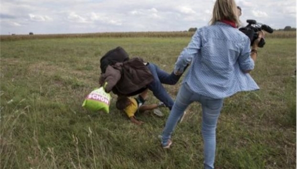 Η εικονολήπτρια, που εργαζόταν για ιδιωτικό τηλεοπτικό σταθμό της Ουγγαρίας -απολύθηκε μετά τον σάλο που προκάλεσε η πράξη της.