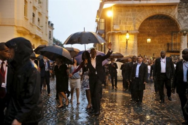 Το πρώτο πράγμα που έκανε ο Μπαράκ Ομπάμα μετά την προσγείωση στο αεροδρόμιο της Αβάνας ήταν να πάει στην -ανοικτή πλέον- αμερικανική πρεσβεία. Βρίσκοντας, όπως ήταν αναμενόμενο, θερμή υποδοχή, μίλησε για «ιστορική επίσκεψη».
