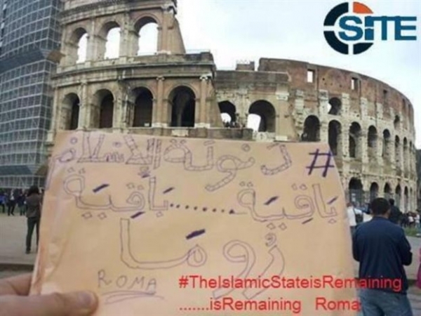 Είναι φωτογραφίες από σημεία στη Ρώμη και στο Μιλάνο -όπως το Κολοσσαίο, σημαίες της έκθεσης EXPO ή σιδηροδρομικούς σταθμούς- και μπροστά τους χαρτόνια ή φύλλα με μηνύματα όπως «είμαστε ανάμεσά σας», «περπατούμε στους δρόμους της Ιταλίας και περιμένουν την ώρα Χ», «παρατηρούμε τους στόχους». Ως υπογραφή υπάρχει ένα «ISIS στη Ρώμη» ή το σήμα της οργάνωσης.