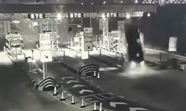 Κάμερα ασφαλείας καταγράφει ένα απίστευτο ατύχημα σε σταθμό διοδίων της Κίνας στην περιοχή Dilian