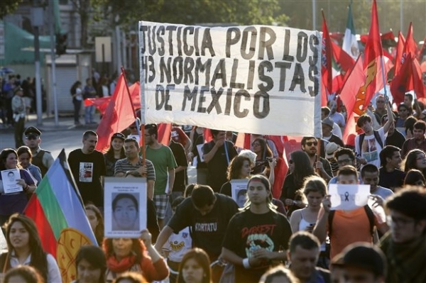 Οι πορείες ξεκίνησαν το βράδυ της Πέμπτης (τοπική ώρα) από τρία ξεχωριστά σημεία της πρωτεύουσας και συναντήθηκαν στην κεντρική πλατεία Σόκαλο, με τους συγγενείς των 43 φοιτητών στην πρώτη γραμμή.