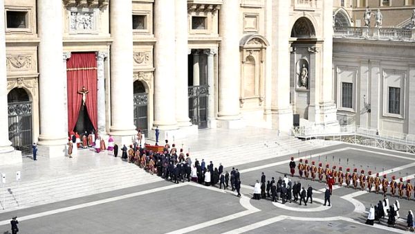 Ολοκληρώθηκε η τελετή μεταφοράς του σκηνώματος του εκλιπόντα πάπα Φραγκίσκου, από τον ξενώνα της Αγίας Μάρθας, στο εσωτερικό της Βασιλικής του Αγίου Πέτρου. Το φέρετρο είναι ανοικτό και μεταφέρθηκε από τους «σεντιάρι», οι οποίοι τίθενται στις υπηρεσίες του εκάστοτε ποντίφικα.