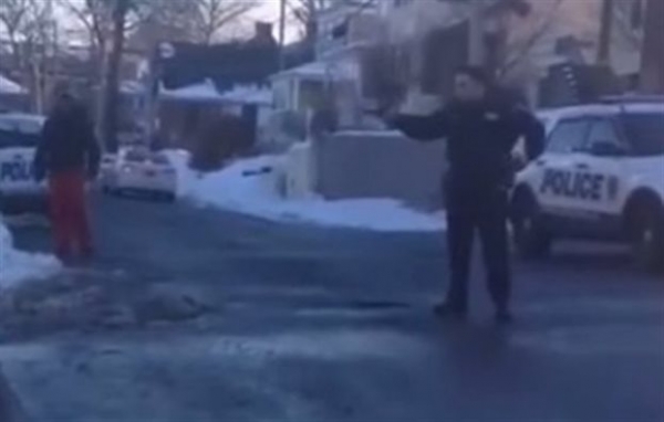 «Επαιζαν απλώς χιονοπόλεμο» ακούγεται να λέει η γυναίκα που κατέγραψε το περιστατικό, το οποίο φέρεται να εκτυλίχθηκε την περασμένη Τετάρτη. «Αυτά τα παιδιά έπαιζαν χιονοπόλεμο και τώρα ένας μπάτσος τα σημαδεύει με όπλο», προσθέτει στο βίντεο.