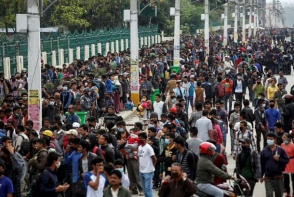 Ενώ οι νεκρικές πυρές συνεχίζουν να καίνε στο Κατμαντού, χιλιάδες σχημάτιζαν το πρωί της Τρίτης ουρές για να μπουν σε ένα λεωφορείο που θα τους απομάκρυνε από την πρωτεύουσα. Η κυβέρνηση έχει διασφαλίσει δωρεάν μετακίνηση με τα λεωφορεία για χωριά και περιφερειακές πόλεις.