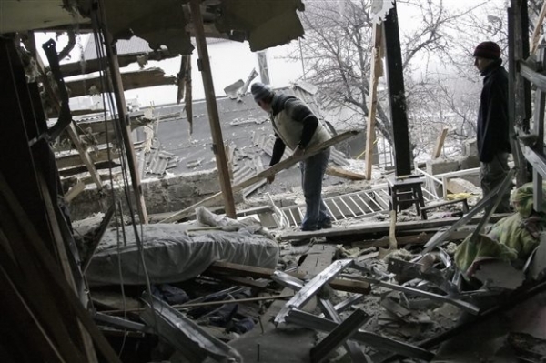 Οι αναφορές των φιλορώσων ενόπλων, οι οποίοι ελέγχουν την περιοχή, μιλούν για εννέα νεκρούς. Η έκρηξη ήταν τέτοιας ισχύος που προκάλεσε ζημιές στα γύρω κτίρια.