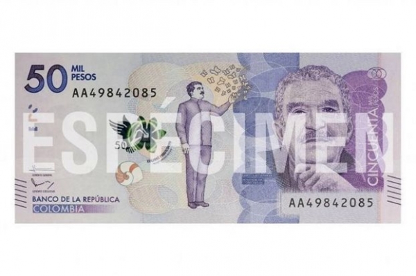 Παρουσιάζοντας το νέο χαρτονόμισμα (η αξία του οποίου αντιστοιχεί σε περίπου 15 ευρώ), ο διοικητής της Κεντρικής Τράπεζας της Κολομβίας είπε πως ο Μάρκες «έφερε το όνομα της Κολομβίας σε όλο τον κόσμο» με το έργο του.