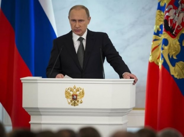 Μιλώντας επί μία ώρα, ενώπιον 1.000 πολιτικών και αξιωματούχων, την περασμένη Πέμπτη, στο Κρεμλίνο, ο Ρώσος πρόεδρος παρουσίασε την δική του εκδοχή για τα γεγονότα της χρονιάς, που σημαδεύτηκε από την αντιπαράθεσή του με την Δύση εν μέσω αυξανόμενων οικονομικών προβλημάτων.