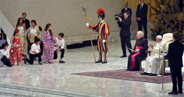 Τον πάπα υποδέχθηκε χορευτικό συγκρότημα μικρών παιδιών, από την κοινότητα των Ρομά της Ματζάρα Ντελ Βάλο, στην Σικελία.