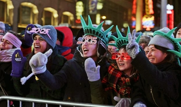 Στη Νέα Υόρκη ένα εκατομμύριο άνθρωποι αναμένεται να συγκεντρωθούν στην Τάιμς Σκουέρ για να παρακολουθήσουν την κάθοδο της γιγαντιαίας κρυστάλλινης μπάλας, η οποία παραδοσιακά σηματοδοτεί τις τελευταίες στιγμές της χρονιάς που φεύγει και την έλευση της νέας.
