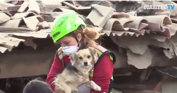 Φωτογραφίες σκύλων που διασώθηκαν και σκύλων που σώζουν ζωές μοιράζεται η Corriere della Sera, ενώ βίντεο από τη διάσωση τετράποδων συγκινούν.