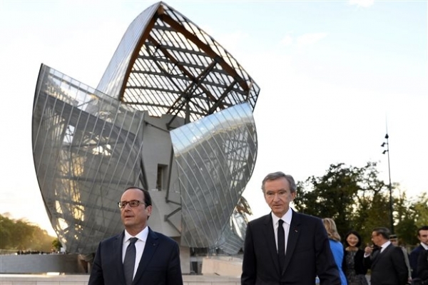 Ο Ολάντ επισκέφθηκε την αίθουσα όπου εκτίθενται οι μακέτες του Φρανκ Γκέρι συνοδευόμενος από τον αρχιτέκτονα και τον Αρνό, ενώ χαιρέτισε την «καταπληκτική ιδέα» στον σχεδιασμό του κτιρίου.