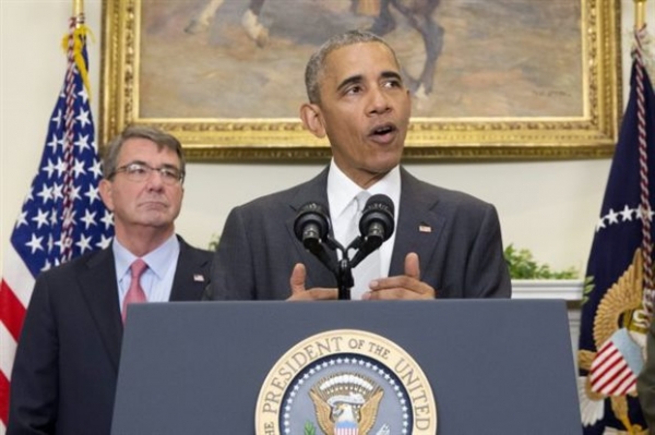 Δίπλα στον αμερικανό πρόεδρο βρισκόταν ο υπουργός Άμυνας Άστον Κάρτερ και ο επικεφαλής του γενικού επιτελείου εθνικής άμυνας των ΗΠΑ, στρατηγός Τζο Ντάνφορντ.
