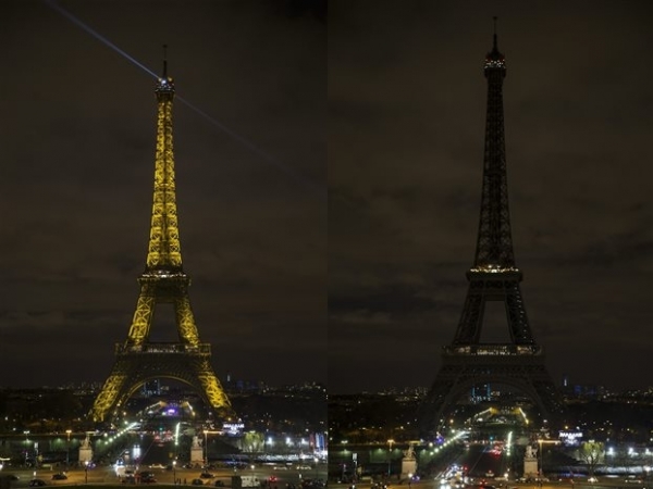 Λίγες ώρες νωρίτερα, στο Παρίσι, ο Πύργος του Άιφελ βυθίστηκε στο σκοτάδι για πέντε λεπτά. Η διάρκεια της «επιχείρησης» αυτής ήταν περιορισμένη για λόγους ασφαλείας. Εκτός όμως από τον Πύργο του Άιφελ, άλλα 300 παριζιάνικα μνημεία έσβησαν τα φώτα τους στο πλαίσιο της «Ώρας της Γης» που οργάνωσε για ένατη συνεχή χρονιά στο Παγκόσμιο Ταμείο για τη Φύση (WWF).