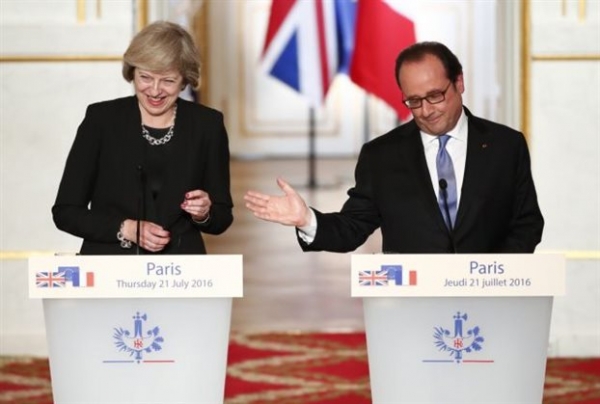 Από την πλευρά της η πρωθυπουργός της Βρετανίας υπογράμμισε ότι επιθυμεί να διατηρήσει τους στενούς οικονομικούς δεσμούς με τη Γαλλία παρά την απόφαση του Λονδίνου υπέρ του Brexit.