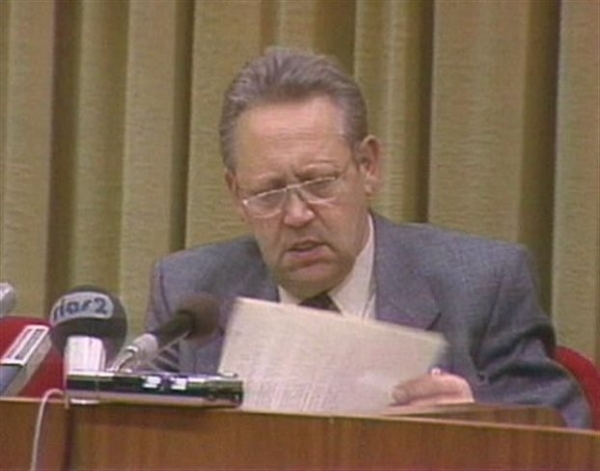 Ο Σαμπόφσκι, που ήταν μέλος και εκπρόσωπος του Πολιτικού Γραφείου, μιλούσε σε μια κατά τα λοιπά αδιάφορη συνέντευξη Τύπου, στις 9 Νοεμβρίου 1989, όταν ρωτήθηκε από έναν δημοσιογράφο για τις τρέχουσες ταξιδιωτικές οδηγίες.