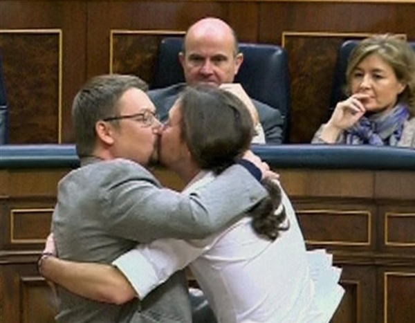Το στιγμιότυπο έλαβε χώρα κατά τη διάρκεια συνεδρίασης του Κοινοβουλίου υπό το σαστισμένο βλέμμα του Λουίς ντε Γκίντος, παρουσία και του Μαριάνο Ραχόι.