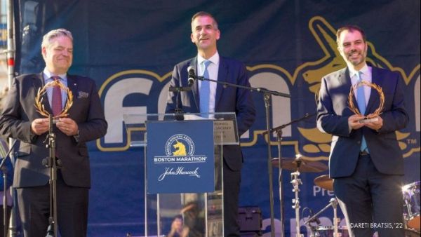 Αναφερόμενος στον συμβολισμό αυτής της παράδοσης, κατά τη διάρκεια της ομιλίας του στην πλατεία Κόπλεϊ, ο δήμαρχος Αθηναίων τόνισε: «Έχω την τιμή να εκπροσωπώ τη γενέτειρα της Δημοκρατιας, των πρώτων σύγχρονων Ολυμπιακών Αγώνων και του πρώτου Μαραθωνίου. Τα στεφάνια αυτά συμβολίζουν τις αρχές της δημοκρατίας και της ειρήνης». Μάλιστα, ευχαρίστησε το Γενικό Προξενείο της Ελλάδας και την Επιτροπή Alpha Omega που, όπως είπε, «τιμούν αυτούς τους δεσμούς, επανασυνδέοντας τον Μαραθώνιο της Βοστώνης με τις αρχαίες ελληνικές του ρίζες, αποτίοντας φόρο τιμής στην κληρονομιά της Ελλάδας και επιβεβαιώνοντας τους ιστορικούς δεσμούς της Αθήνας με τη Βοστώνη».