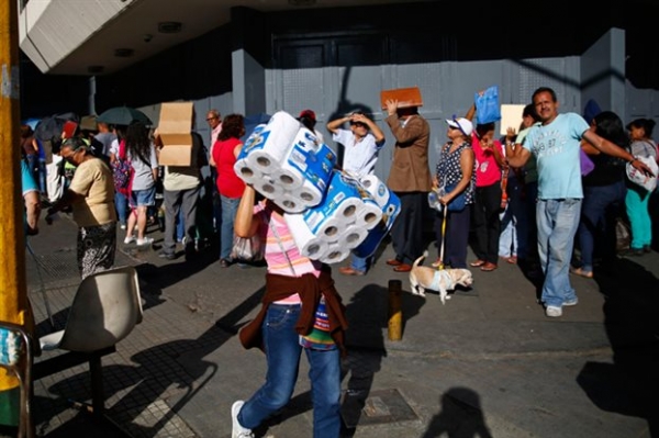 Στρατιώτες φρουρούν σούπερ μάρκετ, παντοπωλεία αλλά και φαρμακεία στο Καράκας ώστε να αποφευχθεί ενδεχόμενο πλιάτσικο και επεισόδια που, ήδη, έχουν στην κυριολεξία αδειάσει τα ράφια των καταστημάτων.