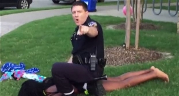 Ένας εξ αυτών αρπάζει μία έφηβη από το μαγιό της, την ρίχνει στο έδαφος και την σέρνει για λίγα μέτρα. Προκειμένου να ακινητοποιήσει την 14χρονη, ο αστυνομικός την ρίχνει στο έδαφος και πατά με τα δύο γόνατά του στην πλάτη της.
