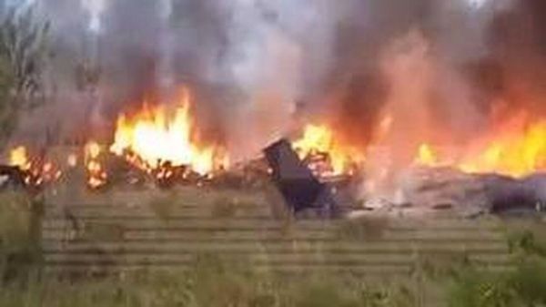 Video of the crash, per Mash, a Telegram channel close to Russian security services. They say eyewitnesses heard two loud bangs shortly beforehand. https://t.co/Q9ERTVIkMVpic.twitter.com/9gBnVeZ1GM
