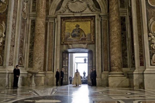 Ο Φραγκίσκος αγκάλιασε τον επίτιμο ποντίφικα, Βενέδικτο, και προχώρησε –όπως ορίζει η τελετουργία– στο άνοιγμα της «Αγίας Πύλης» της βασιλικής εκκλησίας του Αγίου Πέτρου.