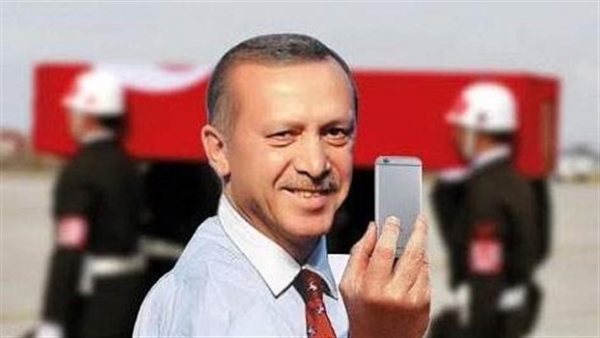 Στο εξώφυλλο απεικονίζεται ο Ταγίπ Ερντογάν να χαμογελά χαιρέκακα και να βγάζει μια σέλφι, με φόντο ένα φέρετρο που είναι καλυμμένο με την κόκκινη τουρκική σημαία, ένας φόρος τιμής στους πεσόντες στρατιώτες.