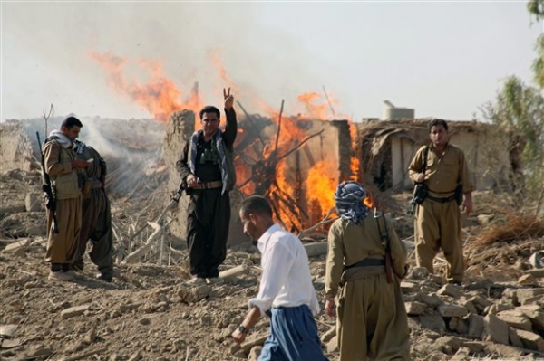 Πυκνός καπνός υψωνόταν από την πόλη Τζίζρε, κοντά στα σύνορα με τη Συρία, μετά την επίθεση που εξαπέλυσαν εναντίον μιας στρατιωτικής βάσης οι αντάρτες του Εργατικού Κόμματος του Κουρδιστάν (PKK), σύμφωνα με τους μάρτυρες.