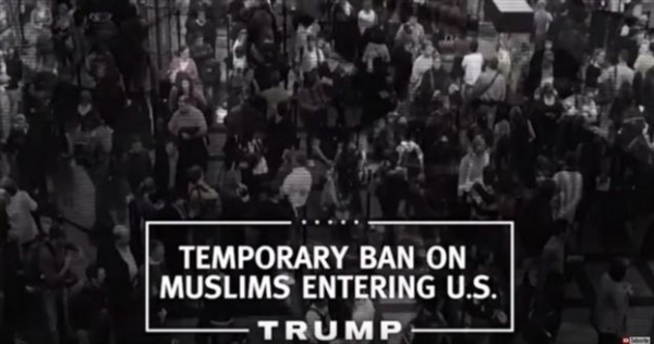 Στο σύντομο σποτ διάρκειας 30 δευτερολέπτων ακούγεται μία ανδρική φωνή που υπενθυμίζει ότι ο Ντόναλντ Τραμπ, ο οποίος προηγείται στις δημοσκοπήσεις του Ρεπουμπλικανικού Κόμματος, θέλει «να απαγορεύσει προσωρινά την είσοδο των μουσουλμάνων στις ΗΠΑ», ενώ προβάλλεται φωτογραφία που απεικονίζει το ζευγάρι που διέπραξε την επίθεση στο Σαν Μπερναρντίνο της Καλιφόρνια τον περασμένο μήνα με 14 νεκρούς.