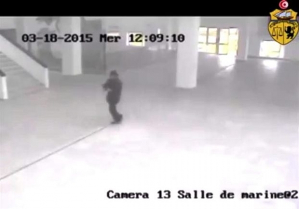 Βίντεο, το οποίο κατέγραψαν οι κάμερες ασφαλείας του Μουσείο Μπάρντο και στο οποίο εικονίζονται οι δύο ένοπλοι άνδρες την ώρα που εισβάλλουν, έδωσαν στη δημοσιότητα οι Αρχές της Τυνησίας. Ενόσω το ενός λεπτού βίντεο κάνει τον γύρο του κόσμου, ο πρόεδρος της Τυνησίας Μπέτζι Κάιντ Εσέμπσι ανακοίνωσε την Κυριακή ότι στην τρομοκρατική επίθεση εμπλεκόταν και τρίτος άνδρας ο οποίος διαφεύγει.