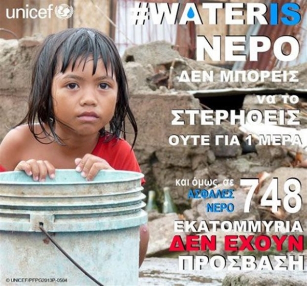 Βασιζόμενοι στην επιτυχημένη εκστρατεία της προηγούμενης χρονιάς, η UNICEF και οι συνεργάτες της καλούν και φέτος τους πολίτες να συμμετάσχουν μέσα από τα μέσα κοινωνικής δικτύωσης με το hashtag #wateris, για την αύξηση της ευαισθητοποίησης σχετικά με το θέμα και την ανάδειξη των δεινών των συνανθρώπων μας που εξακολουθούν ακόμη και σήμερα να στερούνται το πόσιμο νερό.