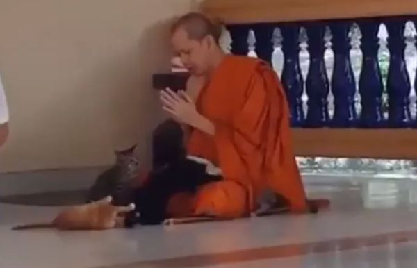 Viral βίντεο με Βουδιστή μοναχό να διαλογίζεται ατάραχος ανάμεσα σε 5 παιχνιδιάρες γάτες