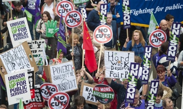 Η πορεία, στην οποία συμμετείχαν εργαζόμενοι στο δημόσιο και στον ιδιωτικό τομέα, άρχισε μετά το μεσημέρι και αναμένεται να φθάσει στο κέντρο της βρετανικής πρωτεύουσας, ως το Χάιντ Παρκ.
