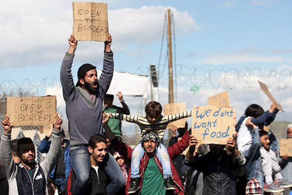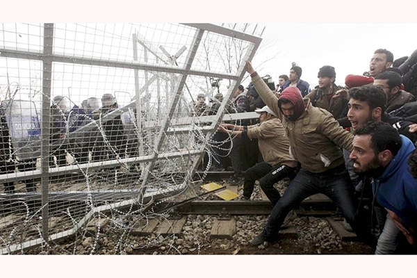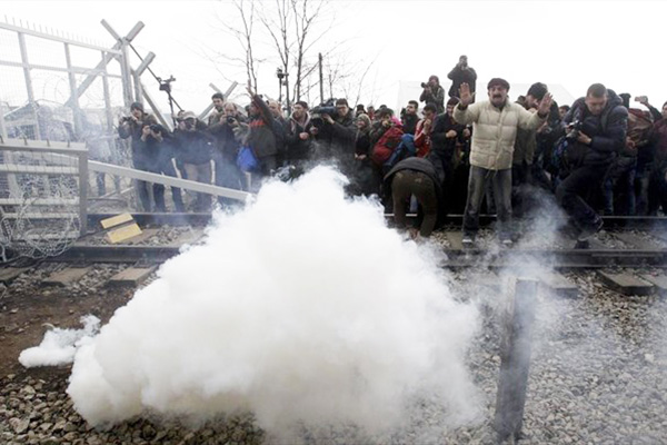 Μεγάλη ομάδα προσφύγων -πολλοί με τα υπάρχοντά τους ανά χείρας- κατέλαβαν τις σιδηροδρομικές γραμμές, ενώ ορισμένοι κινήθηκαν προς το μεταλλικό φράχτη πετώντας πέτρες και ζητώντας να τούς επιτρέψουν οι αρχές της γειτονικής χώρας τη διέλευση.