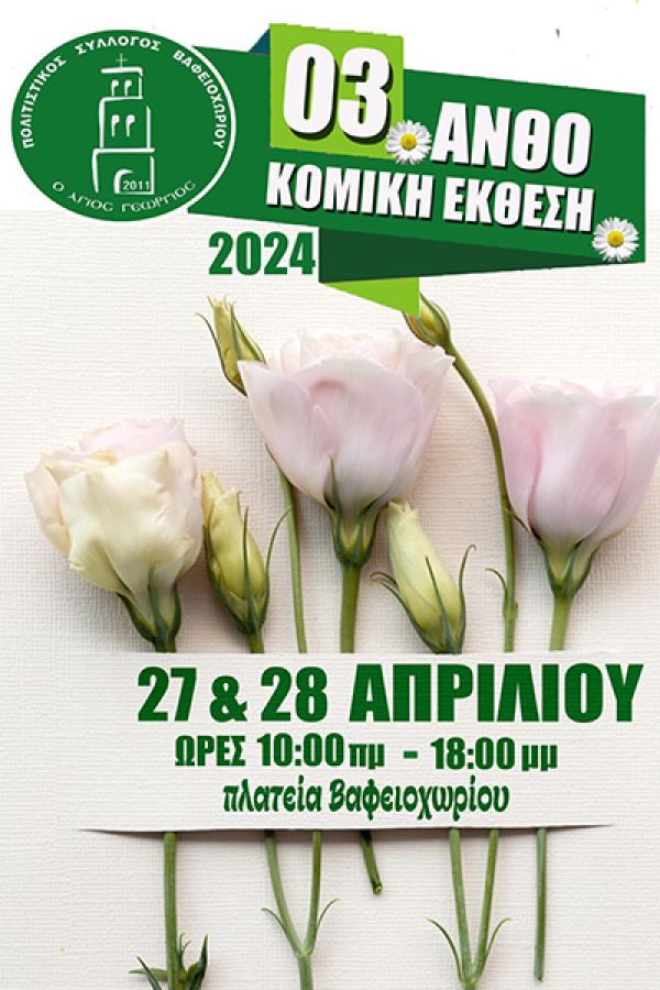 Η έκθεση θα πραγματοποιηθεί στις 27 και 28 Απριλίου, από τις 10 το πρωί μέχρι τις 6 το απόγευμα, στην πλατεία Βαφειοχωρείου.