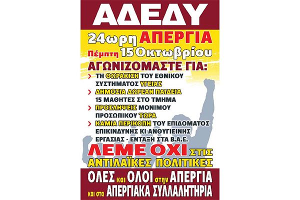 ΟΛΕΣ ΚΑΙ ΟΛΟΙ ΣΤΗΝ ΑΠΕΡΓΙΑ ΚΑΙ ΣΤΑ ΑΠΕΡΓΙΑΚΑ ΣΥΛΛΑΛΗΤΗΡΙΑ