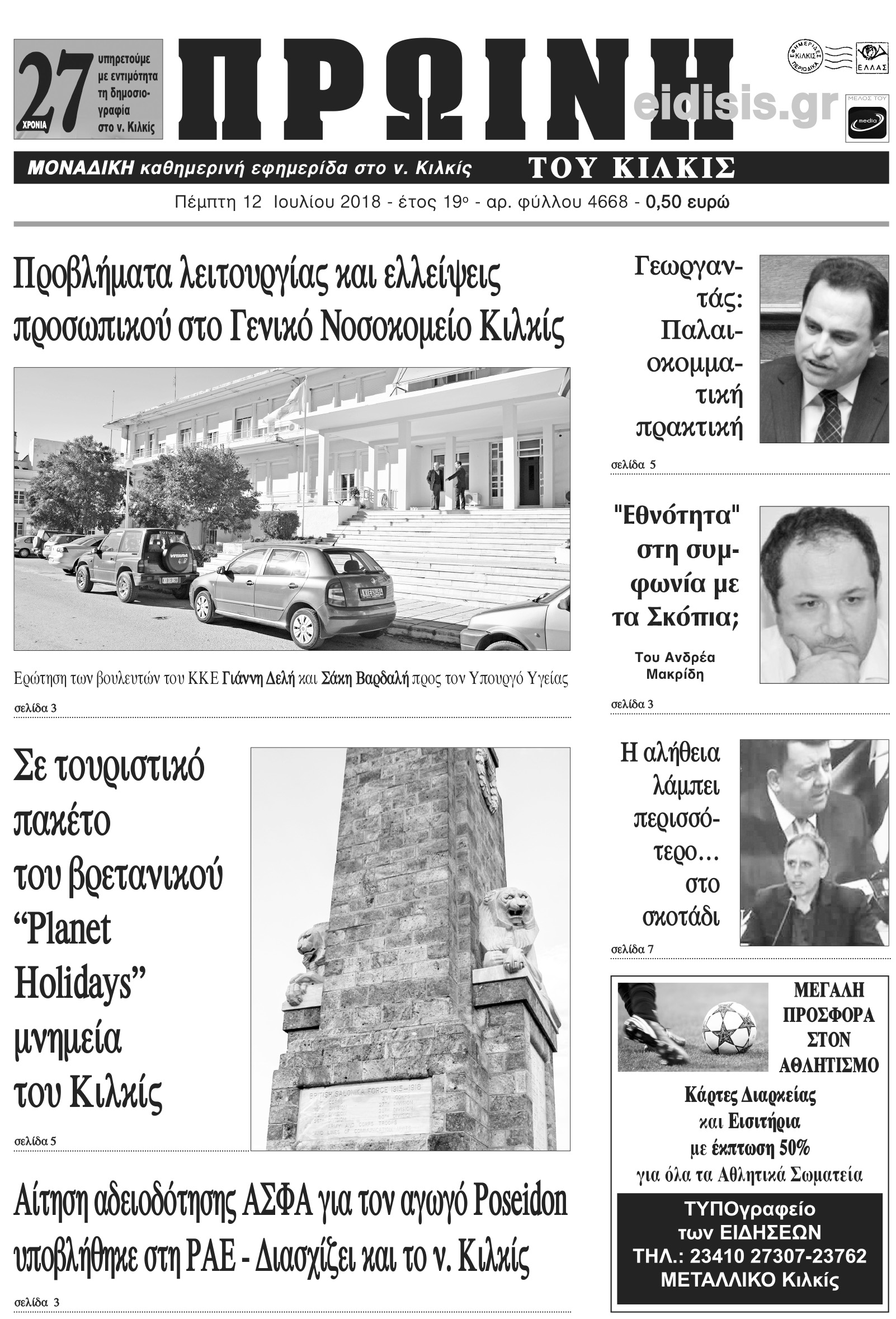 Διαβάστε το νέο πρωτοσέλιδο της Πρωινής του Κιλκίς, μοναδικής καθημερινής εφημερίδας του ν. Κιλκίς