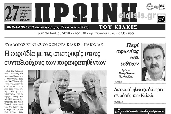 Διαβάστε το νέο πρωτοσέλιδο της Πρωινής του Κιλκίς, μοναδικής καθημερινής εφημερίδας του ν. Κιλκίς