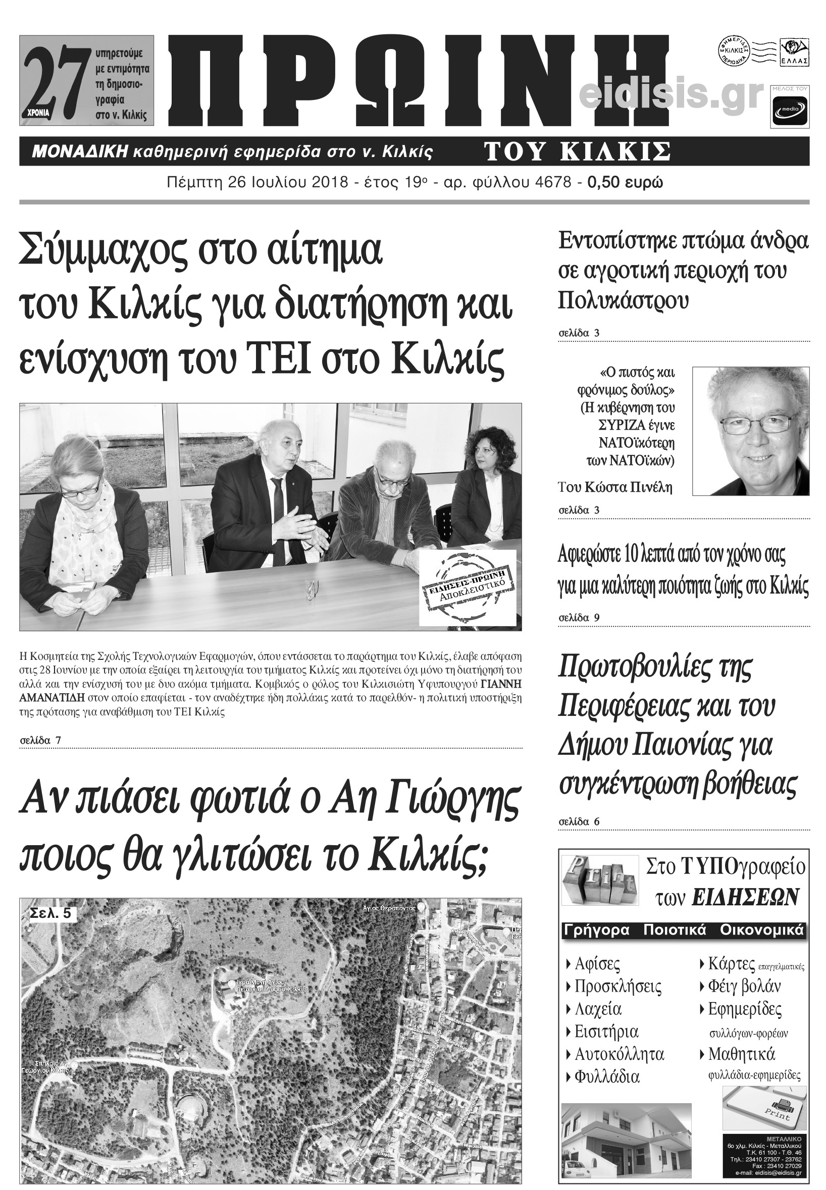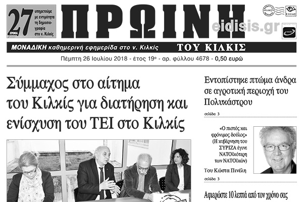 Διαβάστε το νέο πρωτοσέλιδο της Πρωινής του Κιλκίς, μοναδικής καθημερινής εφημερίδας του ν. Κιλκίς