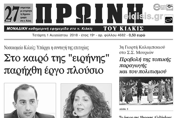 Διαβάστε το νέο πρωτοσέλιδο της Πρωινής του Κιλκίς, μοναδικής καθημερινής εφημερίδας του ν. Κιλκίς