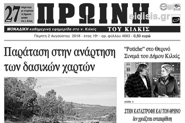 Διαβάστε το νέο πρωτοσέλιδο της Πρωινής του Κιλκίς, μοναδικής καθημερινής εφημερίδας του ν. Κιλκίς