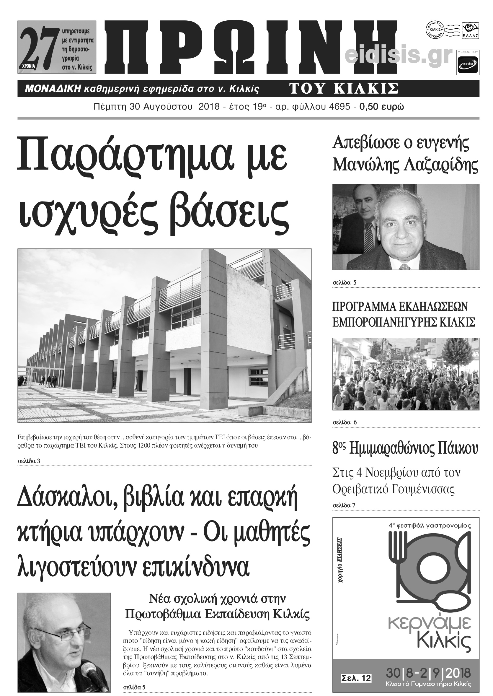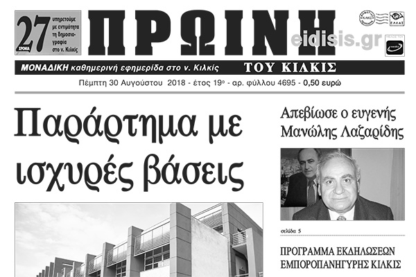 Διαβάστε το νέο πρωτοσέλιδο της Πρωινής του Κιλκίς, μοναδικής καθημερινής εφημερίδας του ν. Κιλκίς