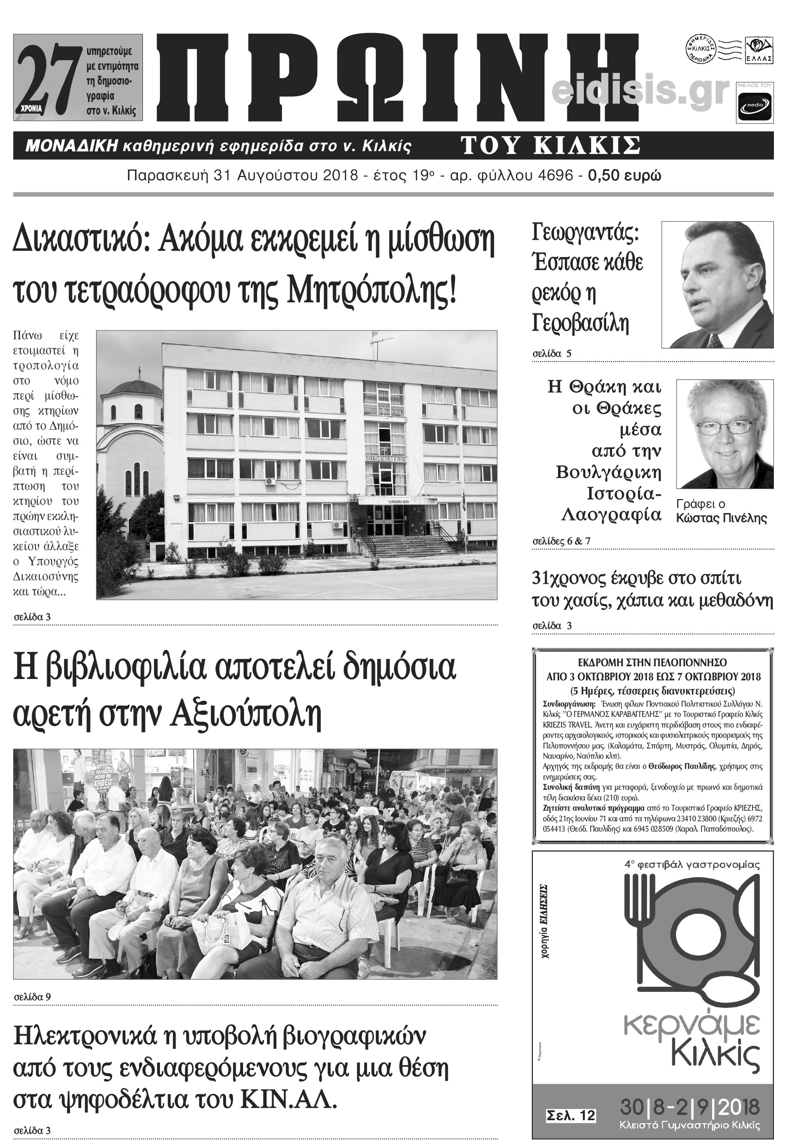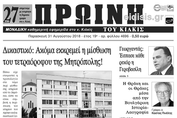 Διαβάστε το νέο πρωτοσέλιδο της Πρωινής του Κιλκίς, μοναδικής καθημερινής εφημερίδας του ν. Κιλκίς